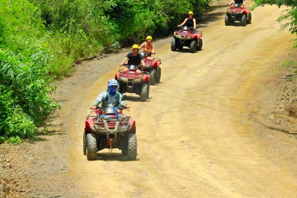 At the Congo Trail Canopy Tour, you'll have the opportunity to explore Costa Rica's natural forests, which have thrived for hundreds of years in this peaceful corner of Central America. Our professional zip-line guides will equip you with a harness, helmet, and all other necessary safety equipment to ensure your safety throughout the tour. The Extreme Canopy Tour is our latest and most thrilling addition, designed to get your adrenaline pumping. Start by trying out the extra-long zip-lines, some of which span over 450 meters (1476.38 feet) and soar through the forest canopy at breakneck speeds, not once, not twice, but three times. Then experience the rush of rappelling from a 22-meter (72.18 feet) platform to the treetops, and get ready for the ride of your life. The Congo Trail Extreme Tarzan Swing is considered one of Guanacaste's most exciting rides. Once you've reached the platform, which is over 20 meters high, you'll be harnessed in for a heart-pumping, adrenaline-filled Tarzan Swing drop that will make you regret eating that egg burrito for breakfast. After the zip-line adventure, Embark on an amazing adventure to Matapalo Beach back roads, accessible via the same driveway as Riu’s Hotel. Along the way, you'll traverse the beautiful dry forests of Guanacaste, home to a diverse array of wildlife including monkeys, birds, and iguanas. Enjoy the journey on our ATVs, available as single or tandem rides. For the mountain adventure, discover the true essence of Costa Rican nature with our guided tour through the winding jungle roads and hidden trails of Guanacaste’s lush mountains. The mountain terrain is rich with wildlife, offering a chance to encounter various birds, animals, and unique plant species. Teens from the age of 16 can ride their own ATVs! Younger children can ride as passangers. You don't have to make a decision right away. On the day of the tour, you can choose the adventure that suits you best, giving you the flexibility to customize your experience.