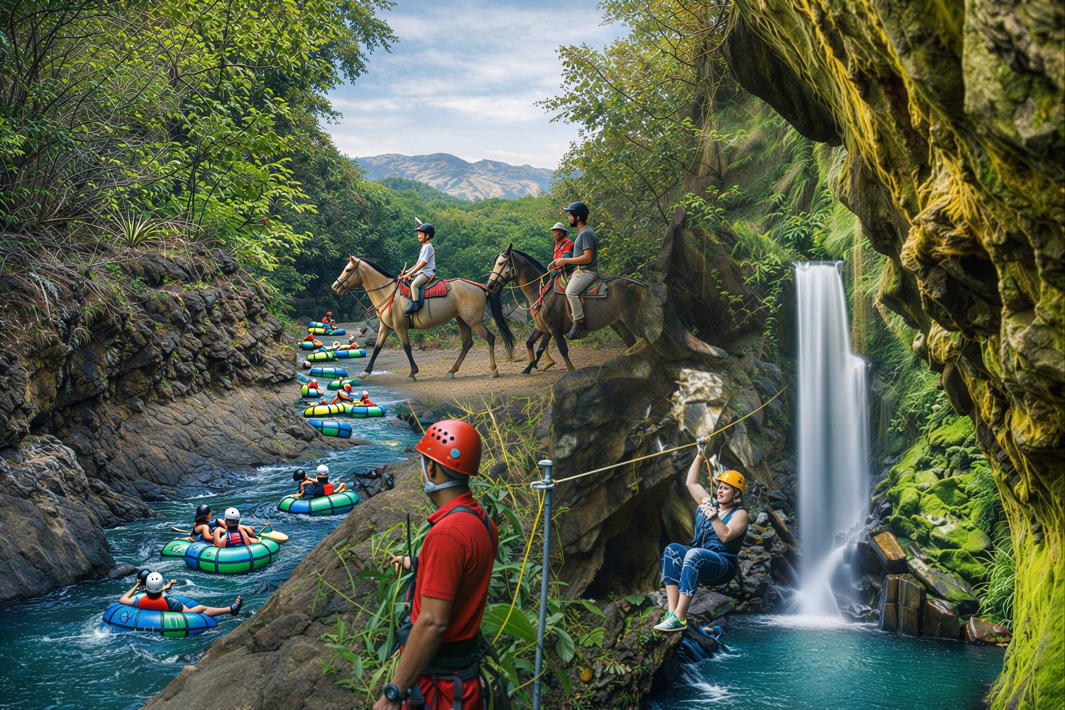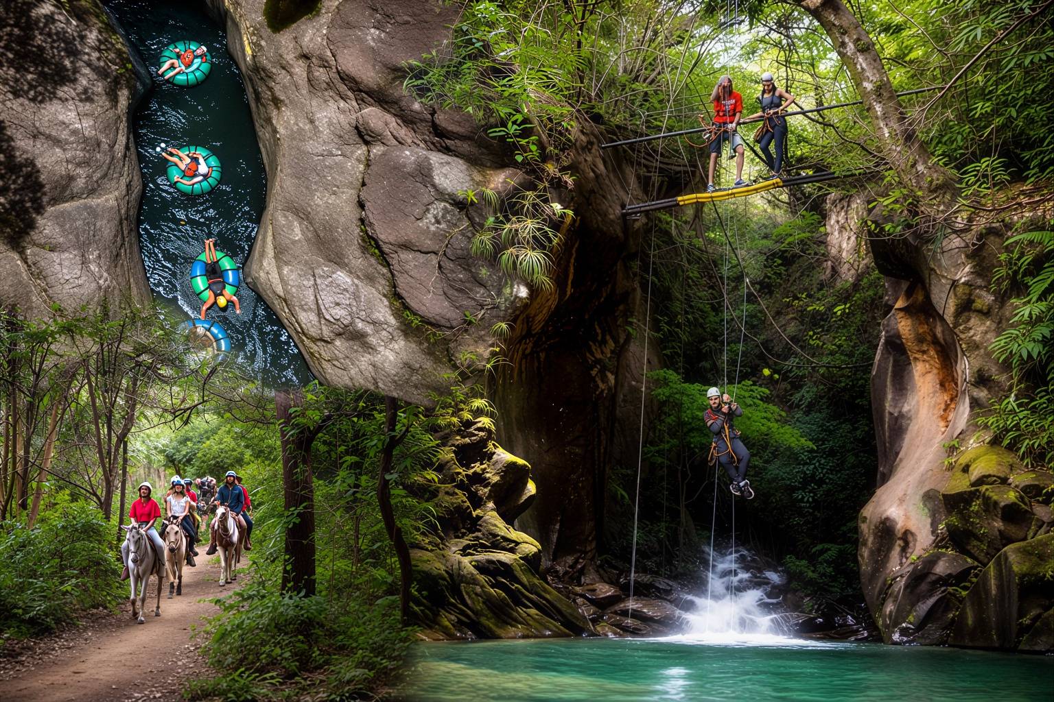 Experience an incredible day packed with the best adventures in Costa Rica! This action-packed itinerary features four main activities that will make your heart race with excitement. Soar through the Rio Blanco Canyon on a thrilling canopy (zip line) tour and rappelling expedition. Brace yourself for a tubing adventure on the Rio Negro River, conquering exhilarating class III rapids. Explore the stunning Costa Rican landscapes on a captivating horseback riding expedition. And to unwind, indulge in the soothing embrace of volcano-heated thermal waters, steam, and a rejuvenating mud bath. Your day also includes a mouthwatering lunch at the Hacienda Guachipelin Restaurant.