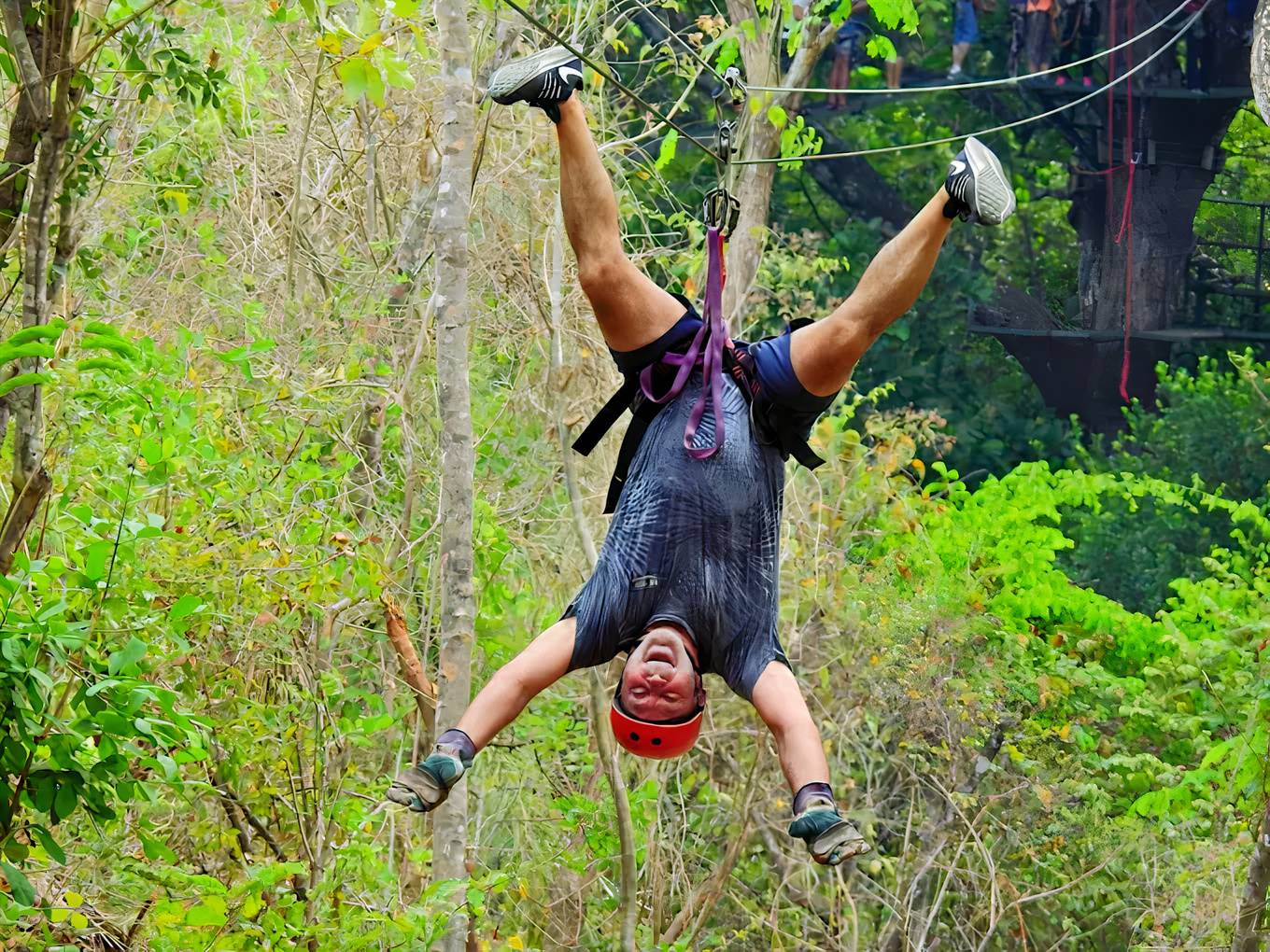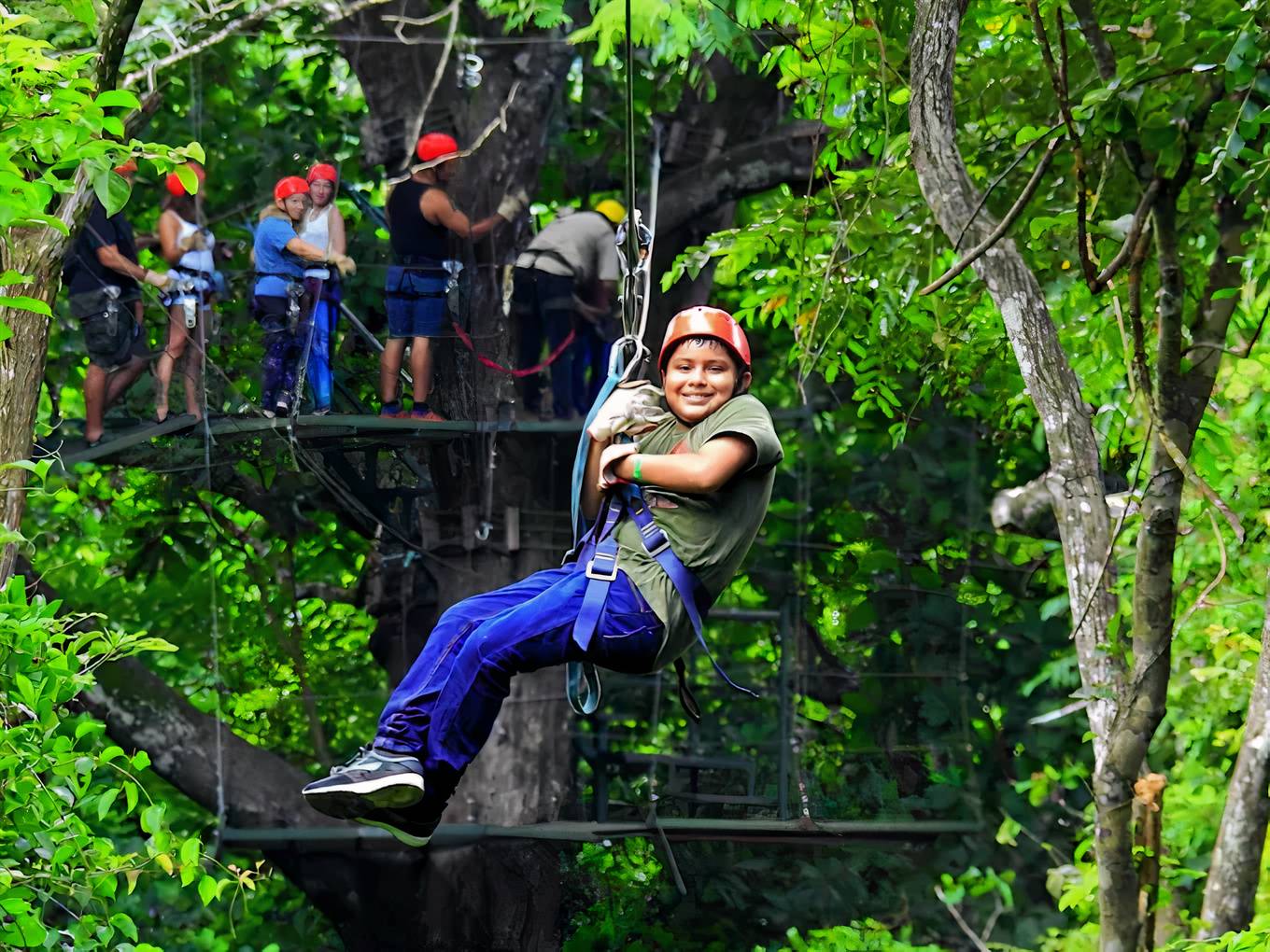 Our professional zip-line guides will fit you with all the necessary safety equipment, including harnesses and helmets, and provide you with a detailed safety briefing before you begin your adventure. Once you're all set, get ready to feel the thrill as you glide through the canopy, zip-lining down 100's of meters of cable suspended between giant Guanacaste trees. Between each zip-line, you'll find sturdy platforms that lead you to the next thrilling step.