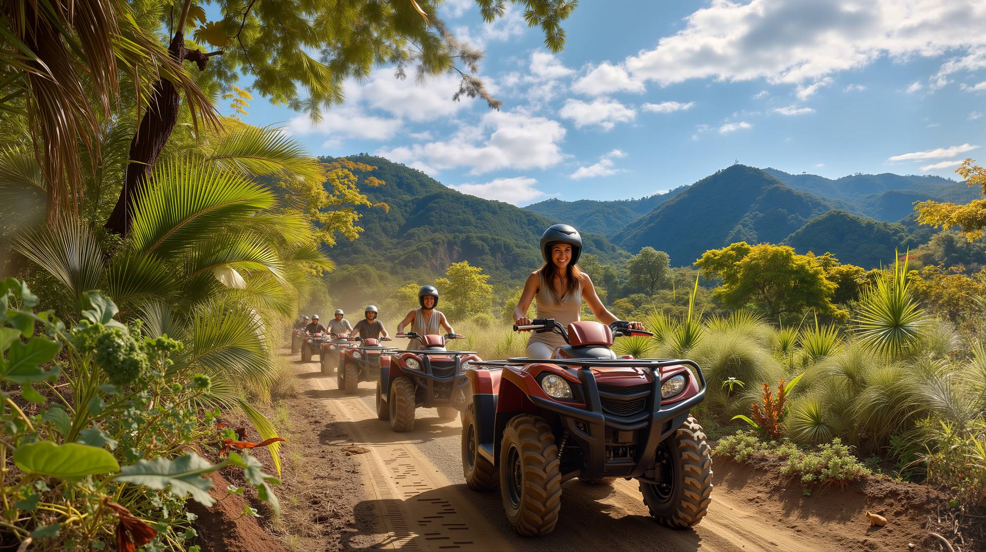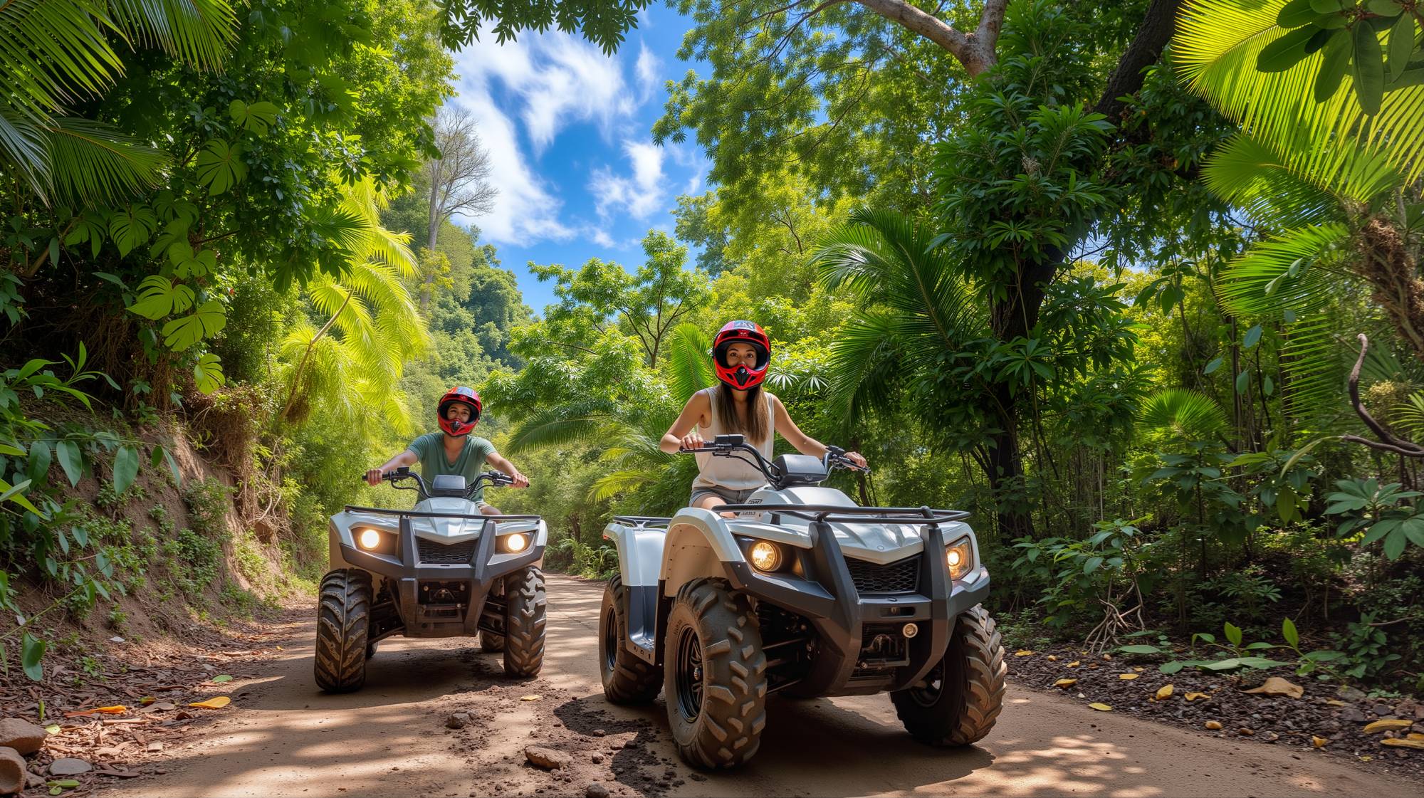 Explore the Costa Rican jungle landscape on your own ATV mountain tour. Our experienced tour guides will take you on a true adventure through the winding jungle roads. On this tour, you will have the opportunity to enjoy the thrill of driving your ATV through the photo-perfect back trails of Guanacaste's famous jungle-covered mountains. After climbing the mountains we can stop to see breathtaking views from around 1200' foot elevations, and continue the adventure along Costa Rica's Pacific coast.