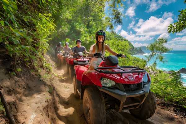 Are you ready for an adventure? Bring your family along, as kids from three years old and up can participate in the thrill along with a parent. Start your day soaring through the forests of Guanacaste on one of two state-of-the-art zip-line courses, suspended securely above the ground through the treetops. After returning to ground level, hop on an ATV and cruise along the historic donkey trail that runs through the mountains. With this combo tour, you have the option of choosing the nature of your four-hour journey. First, you can choose between two zip-line courses: the renowned Original Zip-Line Tour, consisting of eleven different runs and three hanging bridges, or the Extreme Zip-Line tour option, which offers more intense attractions such as the Tarzan Swing and Superman Ziplines. Prepare for a thrilling guided ATV ride after your zip-lining excursion with a choice between a beach or mountain adventure. On the 2-hour beach tour, explore the beautiful landscape of Matapalo Beach in Guanacaste, following the driveway to Riu's Hotel. Enjoy stunning sea views and take a dip in the water if you’re in a bathing suit. The route through the dry forest offers chances to see monkeys, birds, and iguanas. Alternatively, the mountain tour offers a true Costa Rican adventure through jungle roads and back trails of Guanacaste's mountains. Cross forest trails and rivers to reach the seasonal "Kimillo's" waterfall (during the rainy season) for stunning photos. This area is rich with wildlife, providing opportunities to see diverse birds, animals, and plants. You don't have to decide right now. On tour day, you can choose the adventure that suits you best.