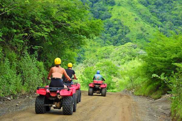 When you visit Guanacaste Costa Rica, one of the most popular activities to indulge in is zip-lining through the giant Guanacaste trees' canopy. The Original Canopy tour offers a unique adventure that combines 100s of meters of zip-lines and platforms with hanging bridges. Our professional zip-line guides will provide you with safety equipment, including a harness and helmet, and give you an essential safety speech to ensure you are prepared to zip-line through the canopy safely. As you zip-line through the canopy, the thrill is unmatched, with the wind in your face and the excitement of flying through the air. Keep your eyes peeled for families of monkeys searching for food in the trees. There are 14 platforms, 11 cables, and 3 hanging bridges, with varying distances of 400, 200, 150, 100, 80, and 50 meters. The platforms' height reaches up to 30 meters, providing a stunning bird's eye view of the surrounding landscapes. After the exhilarating zip-line adventure, experience a guided 500cc ATV ride through the pristine beaches or forest and mountain ranges of Guanacaste. If you opt for the beach, we'll take you to a secluded beachfront only accessible by ATV, where you can dip your toes into the crystal blue waters of the Pacific Ocean and unwind. Alternatively, you can explore the forests and jungles, teeming with various bird species, monkeys, butterflies, and reptiles. You don't have to decide on the adventure that suits you best right away. On tour day, you can choose which activity you prefer, allowing you to have a flexible and customized experience.
